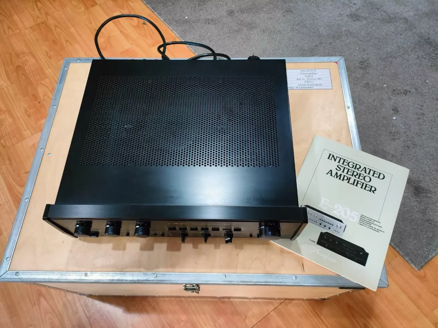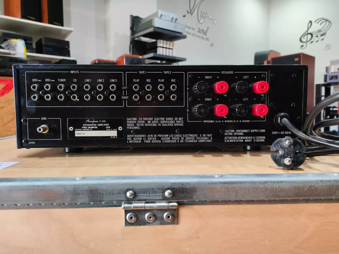 L’Accuphase E-205 offre una resa sonora ricca, dettagliata e naturale. I bassi sono profondi e controllati, mentre le frequenze medie e alte risultano nitide e prive di asprezza. L’amplificatore riesce a mantenere un palcoscenico sonoro ampio e tridimensionale, anche a volumi elevati.