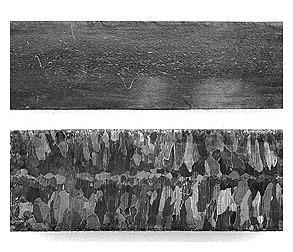 Le immagini mostrano una comparazione tra una sezione di rame PCOCC (sopra) e quella del rame comune (sotto).