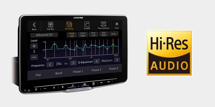 Porta una qualità del suono eccezionale nel tuo veicolo: Alpine Halo9 è la prima unità principale al mondo con un amplificatore in classe D incorporato e ha una vasta gamma di funzioni professionali di regolazione del suono, come X-Over a 2 vie, un EQ parametrico, correzione temporale digitale e molto altro
