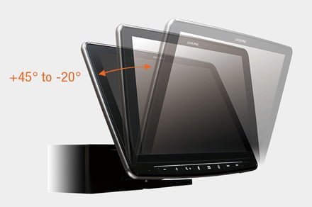 - Angolazione del Display Regolabile: Il display INE-F904DC è regolabile in inclinazione da +45 a -20 gradi per una perfetta integrazione con il cruscotto. Dopo l’aggiustamento, il display viene bloccato per evitare movimenti durante la guida.