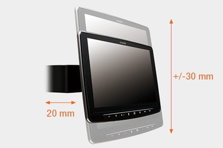 - Altezza del Display Regolabile: L’altezza del display può essere regolata fino a +/- 3 cm dalla posizione centrale, così come la distanza dal cruscotto (fino a 20 mm). Dopo aver trovato la posizione desiderata, il display viene bloccato.