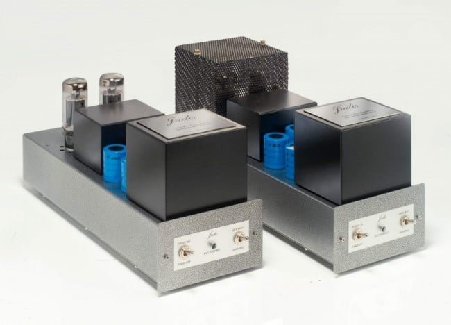 Finale di potenza mono da 40 W in “Classe A”, su 8 ohm. Valvole KT90 x 4 e ECC83 x 2.