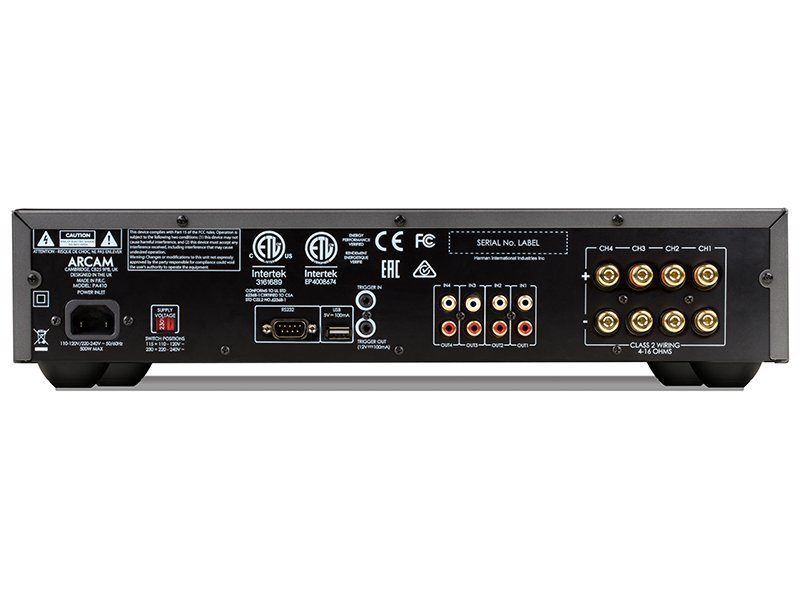 Questo amplificatore finale multicanale di Arcam offre quattro ingressi mono RCA e quattro uscite mono RCA, con una potenza di 50W per canale a 8ohm in Classe A-B. Il trasformatore toroidale garantisce una maggiore efficienza e stabilità. È possibile controllarlo tramite RS232 e ha dimensioni di 433x105x325mm e un peso di 10kg.