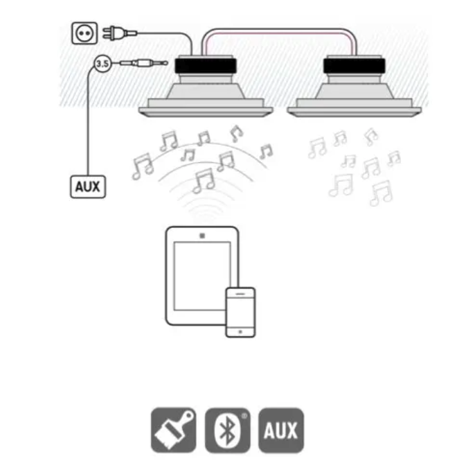 Grazie alla connessione AUX cablata e alla tecnologia Bluetooth, puoi ascoltare la tua musica preferita in ogni stanza direttamente da smartphone o tablet, con il massimo della comodità e controllo wireless.