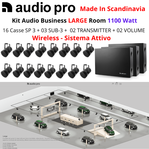 - Con Audio Pro Business hai almeno il doppio della portata di un sistema WiFi. Funziona perfettamente in grandi aree commerciali. Provalo!