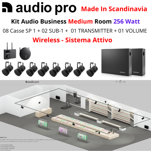 - Con Audio Pro Business hai almeno il doppio della portata di un sistema WiFi. Funziona perfettamente in grandi aree commerciali. Provalo!