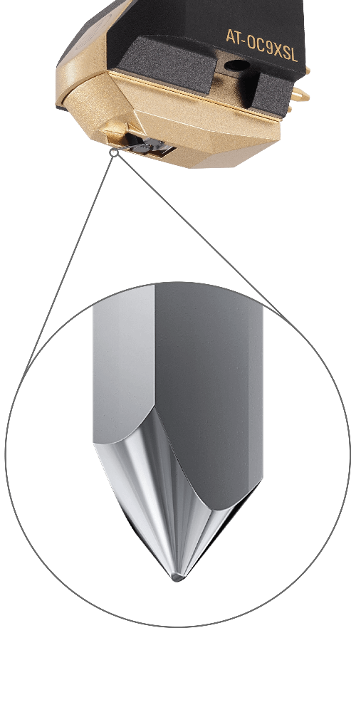 La cartuccia AT-OC9XSL Dual Moving Coil con speciale stilo a contatto con linea è progettata per fornire un’eccezionale separazione dei canali. Le bobine Pure Copper by Ohno Continuous Casting (PCOCC) assicurano la trasmissione audio pura e sono allineate in una formazione inversa a forma di V per esercitare meno pressione sullo stilo, riducendo così al minimo la distorsione. La qualità audio è ulteriormente migliorata da un corpo rigido in alluminio che riduce la risonanza, un magnete al neodimio e un giogo permendur premium che aumentano drasticamente l’energia magnetica e dallo stilo di contatto a linea speciale nudo su un cantilever di boro che traccia il groove del disco con la massima precisione, offrendo un audio ricco e full-range e un’elevata Il corpo della cartuccia è stato pre-threaded, consentendo di essere montato su un guscio della testa o su un braccio integrale con solo due viti, senza bisogno di dadi.
