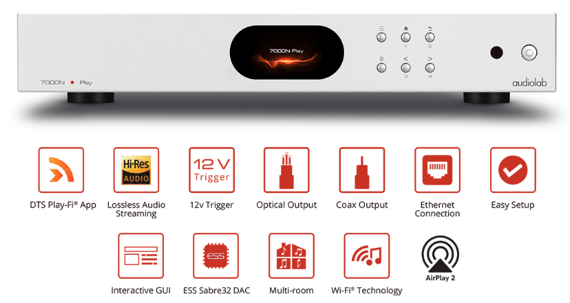 Portando lo streaming audio wireless ad alta risoluzione a qualsiasi sistema audio domestico, il 7000N Play espande ulteriormente il sistema DTS Play-Fi multi-formato, multipiattaforma e multi-sorgente, ora con la compatibilità Apple AirPlay 2.