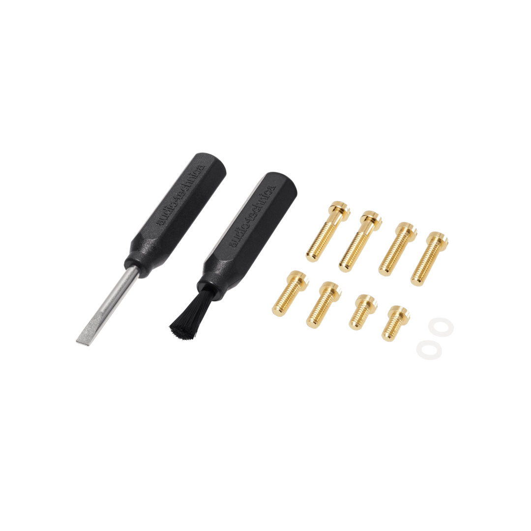 Come nel modello di punta della serie ART, l’AT-ART1000, il titanio viene utilizzato per la piastra di rinforzo della punta che tiene la punta diamantata in posizione. Questo riduce la sua massa e migliora le caratteristiche ad alta frequenza.
