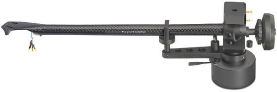 Braccio dritto con shell integrato da 12″ con struttura conica completamente in carbonio e smorzamento del contrappeso in sorbothane. Cavi interni mono crystal in rame. Cuscinetti ad altissima precisione. Fili d’uscita volanti.