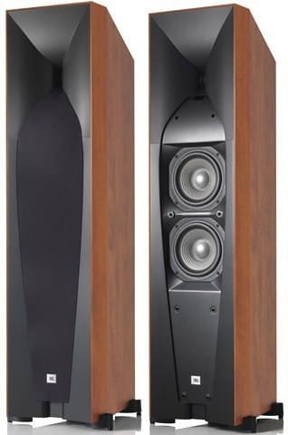 Finish: Black Product details The JBL Studio 590 floorstanding loudspeaker combines a 25mm (1") HF compression driver and Bi-Radial® horn with dual 200mm (8") cast-frame Symmetrical Field Geometry (SFG) woofers to deliver extraordinarily lifelike performance. Ideal for both music and movie systems, the Studio 590 floorstanding loudspeakers are powerful, accurate and styled to make an overwhelming statement in any listening environment.