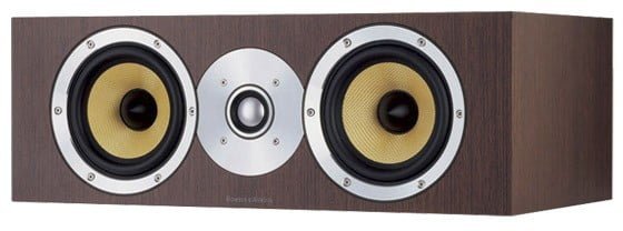 La serie CM cela, dietro un’eleganza di indubbio appeal ed una straordinaria convenienza, un sistema acustico di stirpe B&W al 100%. La serie CM si giova, difatti, della migliore tecnologia Bowers & Wilkins, modulata su specifiche di impiego ben precise quanto efficaci. Il CM Centre è il modello predisposto per il canale centrale in un sistema surround multicanale a 2 vie/3 altoparlanti operanti in reflex. Il tweeter è il classico e rinomato Nautilus, con cupola in alluminio da 2.5 cm. I drivers dei medio/bassi (2) sono un’altra tipicità B&W, con la famosa membrana gialla in Kevlar (fibra di brevetto DuPont, rigida e leggera) da 13 centimetri. La risposta in frequenza del CM Centre va da 55 Hz a 22 kHz. La sensibilità è pari a 85 dB che consiglia un’amplificazione compresa tra i 30 ed i 150 watt. Dimensioni LxHxP 480×166,5x255mm.