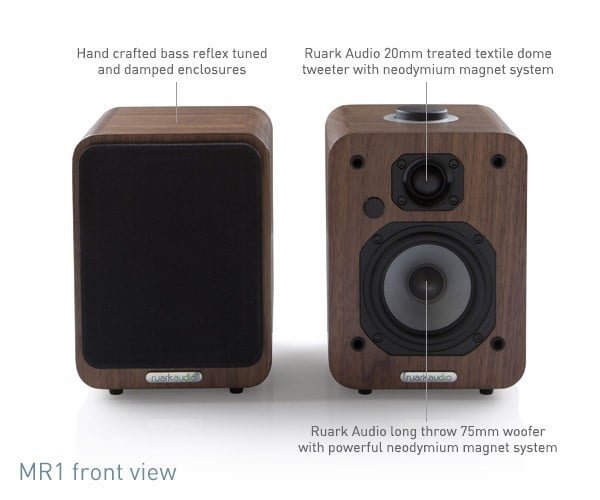 MR1 utilises two new drive units, developed specifically to give high performance sound from MR1s compact dimensions. Using the latest design software, great care has been taken on the woofer and tweeter construction to ensure distortion causing reflections are kept to a minimum. Both units also feature rare earth neodymium magnet systems. This type of magnet material is expensive compared to conventional ferrite systems, but allows greater magnetic concentration, for better driver control, in a lightweight and fully shielded system.