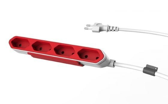 Distributore di alimentazione. 4 uscite di tipo C. Design piatto per essere posizionato sia a terra che montato sotto la scrivania tramite adattatore fornito in dotazione.
