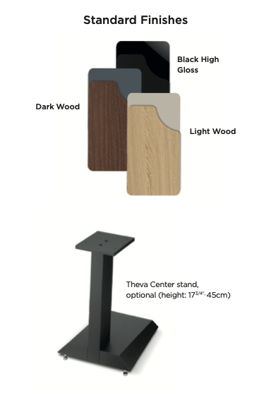 Theva Center è l’altoparlante centrale della linea Theva. È il compagno perfetto per gli altoparlanti del tuo sistema Home Cinema. Dotato di un tweeter TNF in alluminio/minio e due driver per altoparlanti Bass/Midrange Slatefiber, Theva Center migliora la chiarezza dei dialoghi di qualsiasi film, con un livello di dettaglio impressionante. È stato progettato per essere posizionato su un mobile o sul suo supporto (disponibile come extra opzionale), migliorando gli interni con il suo design elegante e raffinato.