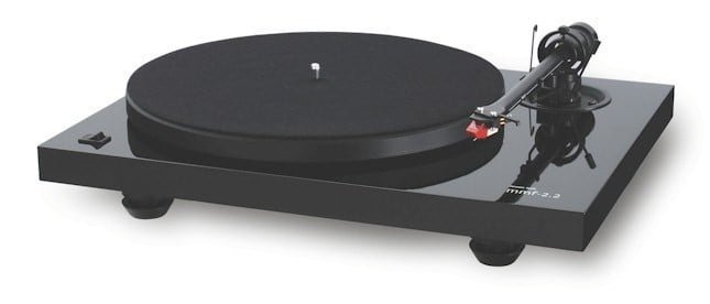 The construction of the MMF-2.2 focuses on the critical music making components; the main bearing, motor, and arm. The plinth is a basic design – high gloss finish on solid MDF, similar to the Pro-Ject Debut III, with the asynchronous motor decoupled from the plinth by a rubber ring. The bearing is a precision stainless-steel and bronze assembly that operates smoothly and silently. It also features a one-piece, highly rigid alloy tonearm.