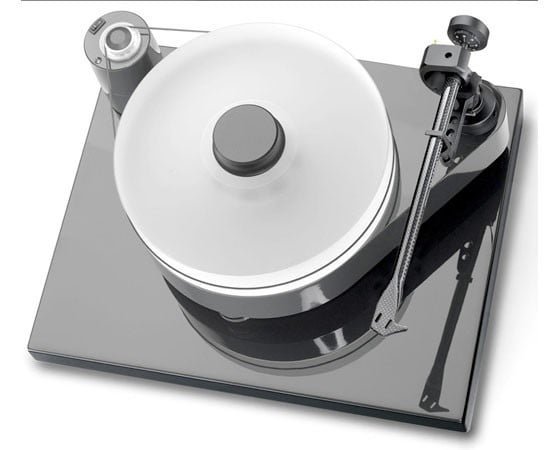 Giradischi compreso di braccio, trazione a cinghia, motore separato e nuova base antirisonante Grond it deluxe. Sistema di contro-magneti per ridurre l’effetto del peso del piatto. Sistema di sospensione con 3 molle regolabili a smorzamento in Sorbotane. Piedini magnetici ad altezza regolabile. Piatto in acrilico. Fornito di serie con il nuovo braccio Pro-Ject 10CC Evolution in carbonio, prese RCA posteriori placcate oro, per l’intercambiabilità del cavo phono. Alimentatore esterno per evitare potenziali interferenze elettromagnetiche. Coperchio antipolvere opzionale. Peso 28,1Kg (con base).