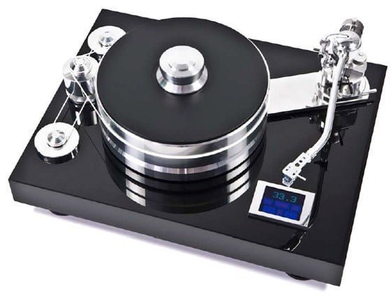 Base antirisonante in composito e piatto con struttura in acciaio disaccoppiato magneticamente. Trazione a cinghia Flywheel, motore silenziosissimo con sistema di controllo LCD. Cuscinetto invertito in ceramica. Speed Box SE integrato per il cambio di velocità. Sistema di sospensione magnetica del sub-chassis con piedini magnetici. Peso 35Kg. Nuovo braccio Project da 12 unipivot in dotazione.