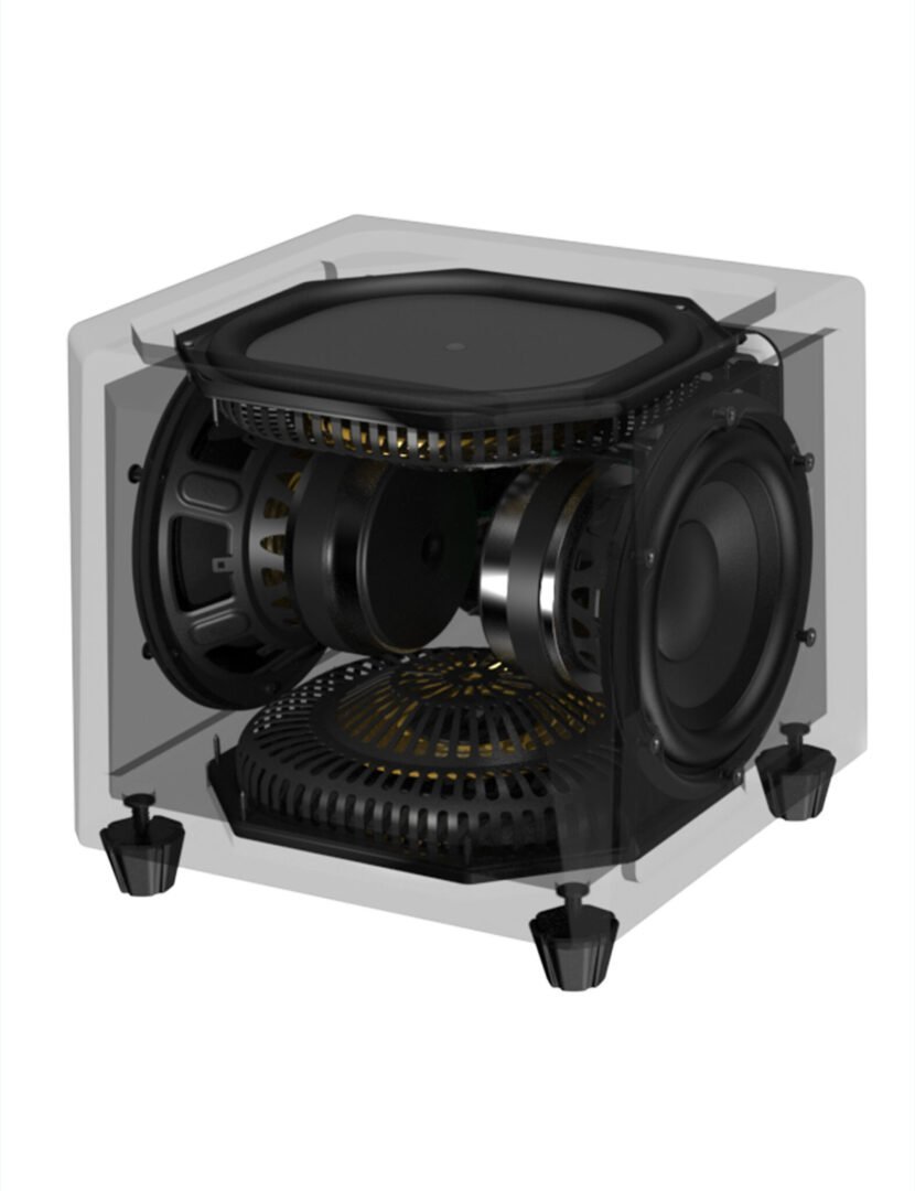 All’interno dello splendido involucro nero lucido sono alloggiati due driver attivi a lunga gittata da 12″ contrapposti orizzontalmente e due radiatori planari a onda posteriore da 15″ x 13″ contrapposti verticalmente, pilotati da un amplificatore digitale di classe D da 1600 watt. . Questo bilanciamento inerziale dinamico brevettato* su doppio piano preserva e concentra tutta l’energia prodotta dai trasduttori per muovere più efficacemente l’aria nella stanza, anziché sprecare energia spostando la scatola. Ti consente anche di ascoltare tutti i dettagli più sottili nelle tue registrazioni. Il vantaggio è il raggiungimento delle migliori prestazioni del subwoofer all’avanguardia che, non solo “scuote la casa”, come ha elogiato Chris Boylan di Big Picture Big Sound, ma è anche “forte, puro e controllato” come afferma la rivista Sound&Vision. Ha scritto Mark Fleischman. Con due driver attivi separati orizzontalmente nello spazio e due radiatori passivi separati verticalmente, l’accoppiamento del driver con la stanza è distribuito in modo molto più fluido, per prestazioni dei bassi nella stanza che normalmente non possono essere ottenute con un singolo subwoofer.