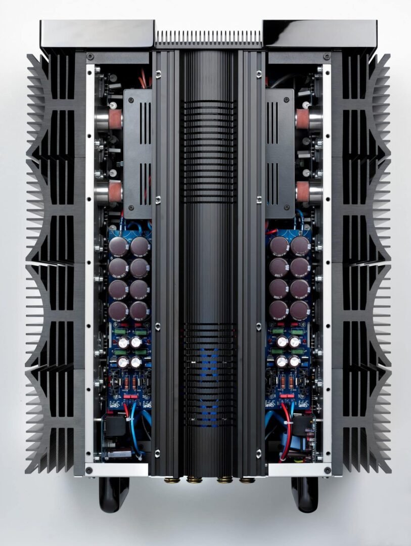 Sebbene la costruzione monoblocco non sia inaudita nella fascia alta, molto spesso i produttori scelgono la via più semplice, creando semplicemente una versione a ponte di un prodotto esistente a due canali. Il bridging accoppia i canali stereo in serie per formare un singolo amplificatore con tensione maggiore e, nominalmente, maggiore potenza di uscita. Sfortunatamente, gli inevitabili effetti collaterali di questo approccio includono il raddoppio della distorsione, il raddoppio dell’impedenza di ingresso (compromettendo la capacità dell’amplificatore di pilotare carichi di altoparlanti a bassa impedenza) e il dimezzamento del fattore di smorzamento (riducendo il controllo del movimento del cono da parte dell’amplificatore alle basse frequenze).