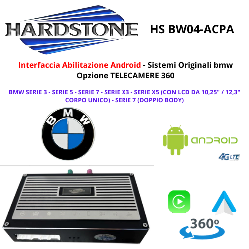 HARDSTONE HS BW04-ACPA | Interfaccia Abilitazione Android su Sistemi Originali BMW – Opzione TELECAMERE 360 (Copia)