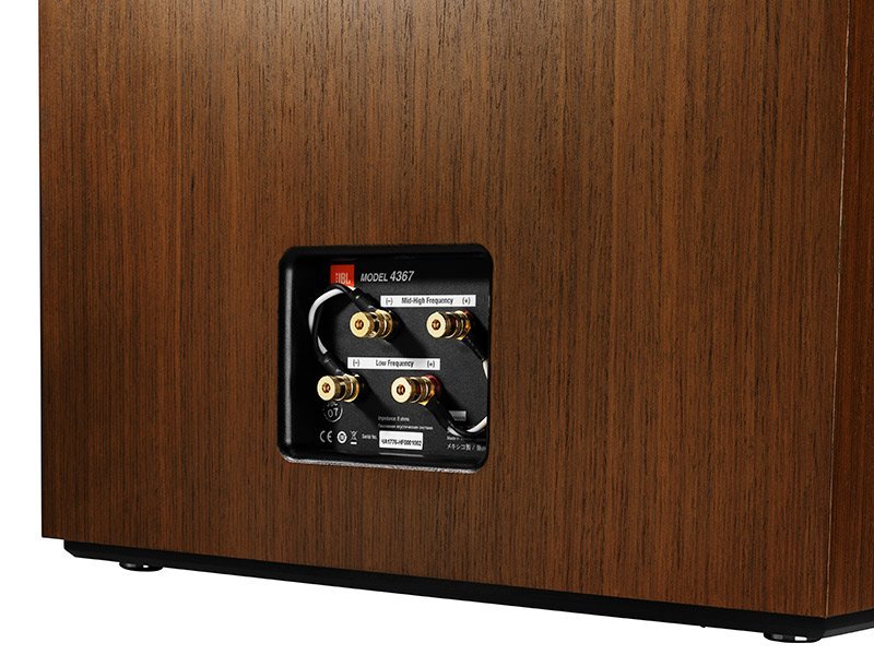I diffusori JBL 4367 sono degli altoparlanti da pavimento a 2 vie in bass reflex, con una costruzione robusta e di alta qualità. Il cabinet è realizzato in legno MDF di alta densità, con un’apertura bass-reflex sul retro per una maggiore estensione delle basse frequenze. Il cabinet è rifinito in due diverse versioni: Noce con griglia Blu o Nera con griglia Nera.