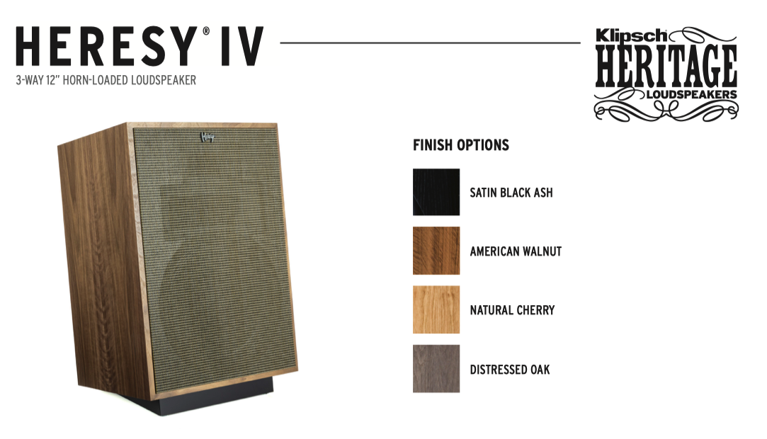 UNA PICCOLA ERESIA FA BENE ALL’ANIMA Grazie alle sue dimensioni, l’Heresy offre il più grande grado di flessibilità di posizionamento nella serie Heritage. Introdotto per la prima volta nel 1957, questo diffusore a tromba a tre vie è ancora in grado di fornire l’incredibile suono Klipsch che i nostri fan in tutto il mondo conoscono e amano.