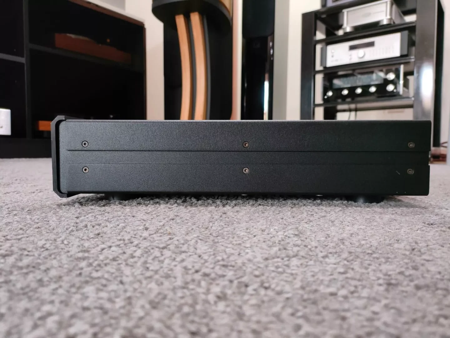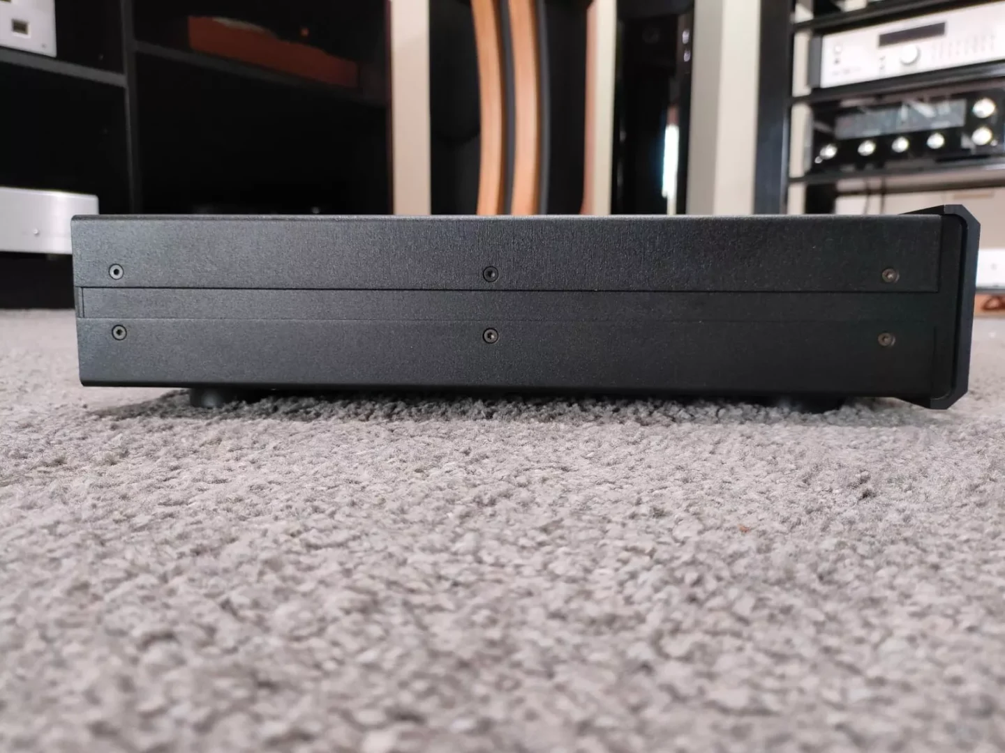 Il design del Krell K-300i è caratterizzato da una struttura robusta in alluminio spazzolato che gli conferisce un look professionale e sofisticato. Krell ha scelto materiali di alta qualità per garantire durata e resistenza, offrendo un prodotto che è esteticamente gradevole e capace di integrarsi perfettamente in ogni ambiente. L’ampio display frontale, oltre a migliorare l’interfaccia utente, consente di monitorare facilmente le impostazioni e le prestazioni dell’amplificatore.