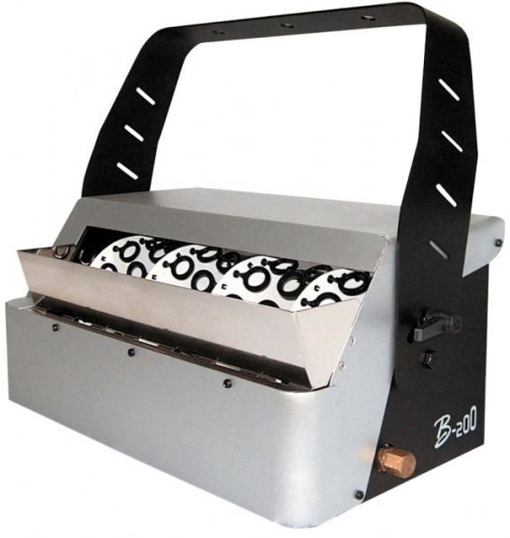 Dire che il B-200 è una macchina per bolle ad alto rendimento è un eufemismo. La macchina “Double Bubble Wheels” sviluppa una produzione massiccia e continua di bolle di sapone. Il set di 3 ventole sul retro del dispositivo gira e distribuisce ampiamente le bolle. I lighting designer hanno contribuito a sviluppare questo prodotto per grandi club e produzioni teatrali, motivo per cui questa macchina per bolle ha anche DMX “a bordo”. Ciò rende possibile il controllo centralizzato della macchina per bolle B-200. La macchina può funzionare anche da sola o, opzionalmente, con timer o telecomando wireless. Poiché il B-200 è dotato di un grande serbatoio di liquidi, la macchina manterrà la stanza in funzione per tutta la durata della festa!Dati tecnici: