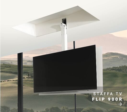 - Il supporto TV motorizzato Maior Flip 900R si apre a libro fino a 90°, ruota a 360° e scende in verticale in modo completamente motorizzato, permettendo una visione ottimale dello schermo da qualunque posizione. Questo lo rende ideale per le TV di grandi dimensioni, permettendoti di sfruttare al massimo l’alloggiamento e la visibilità dello schermo TV, esaltando al massimo il design della stanza.