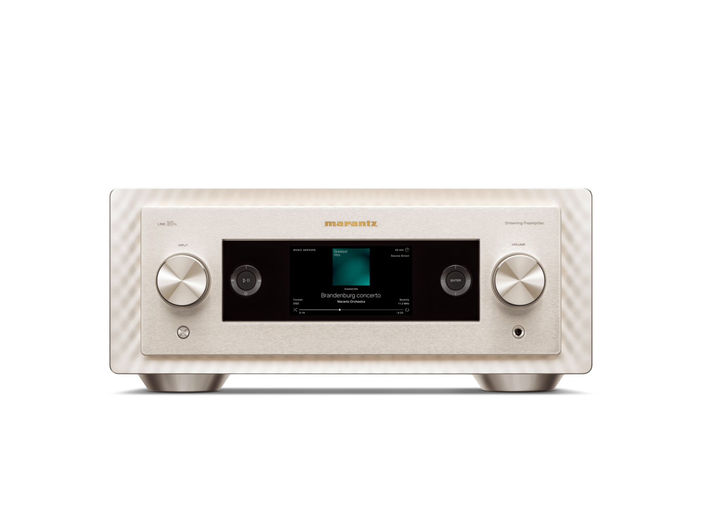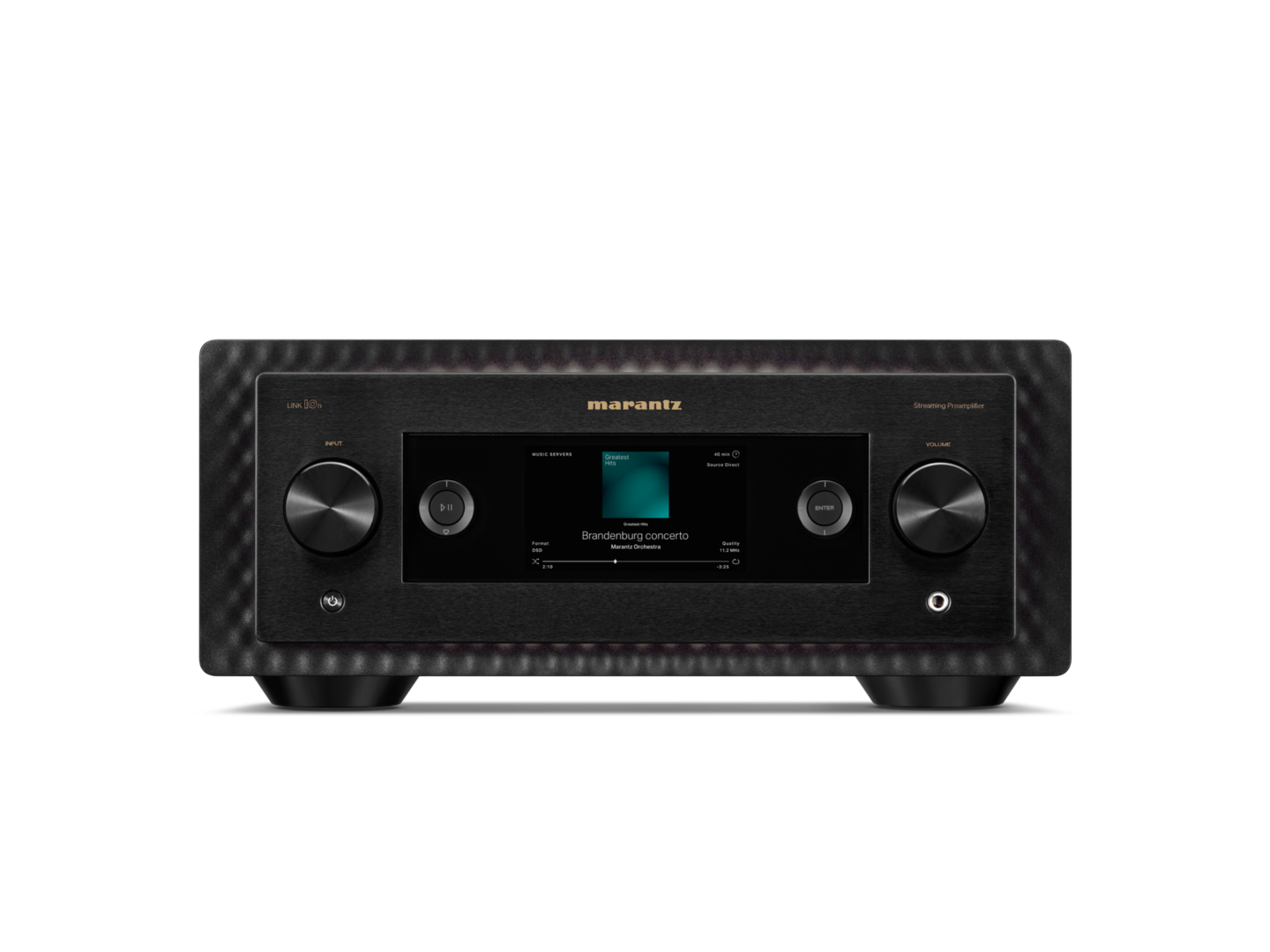 Il Marantz Link 10N è un capolavoro di design. La sua struttura in alluminio spazzolato non solo conferisce robustezza ma si integra perfettamente in qualsiasi ambiente moderno. Il pannello frontale è minimalista e offre controlli intuitivi, mentre il display OLED ad alta risoluzione consente una chiara visualizzazione delle informazioni.