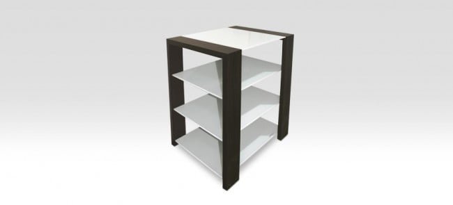 The Kubben combines rigorous lines and harmonious proportions for a zen and contemporary range of furniture. The dark wood contrasts with the white glass which looks like floating on that frame. The Kubben Hi-Fi version o ffers four solid shelves to welcome your high end Hi-Fi system or your Home-Theater equipments. The top shelf is ideally located to place a turntable on it.