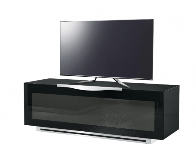Il Pavia ha l’anta anteriore con apertura a ribalta in vetro laccato che consente l’input del telecomando;