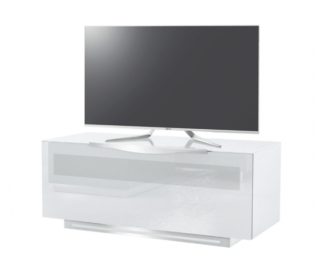 Il Pavia ha l’anta anteriore con apertura a ribalta in vetro laccato che consente l’input del telecomando;