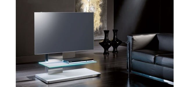 In questo prodotto, sul frontale della colonna in acciaio, sono presenti dei fori atti alla regolazione a piacimento, l’altezza del televisore