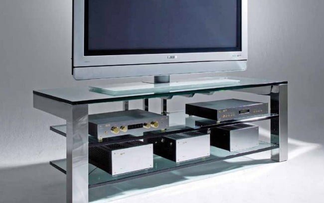 MOBILE TV SCHROERS & SCHROERS FOCUS 110 MAXI 2 RIPIANI SPESSI 20mm NERO VETRO TRASPARENTE 1065x600x520