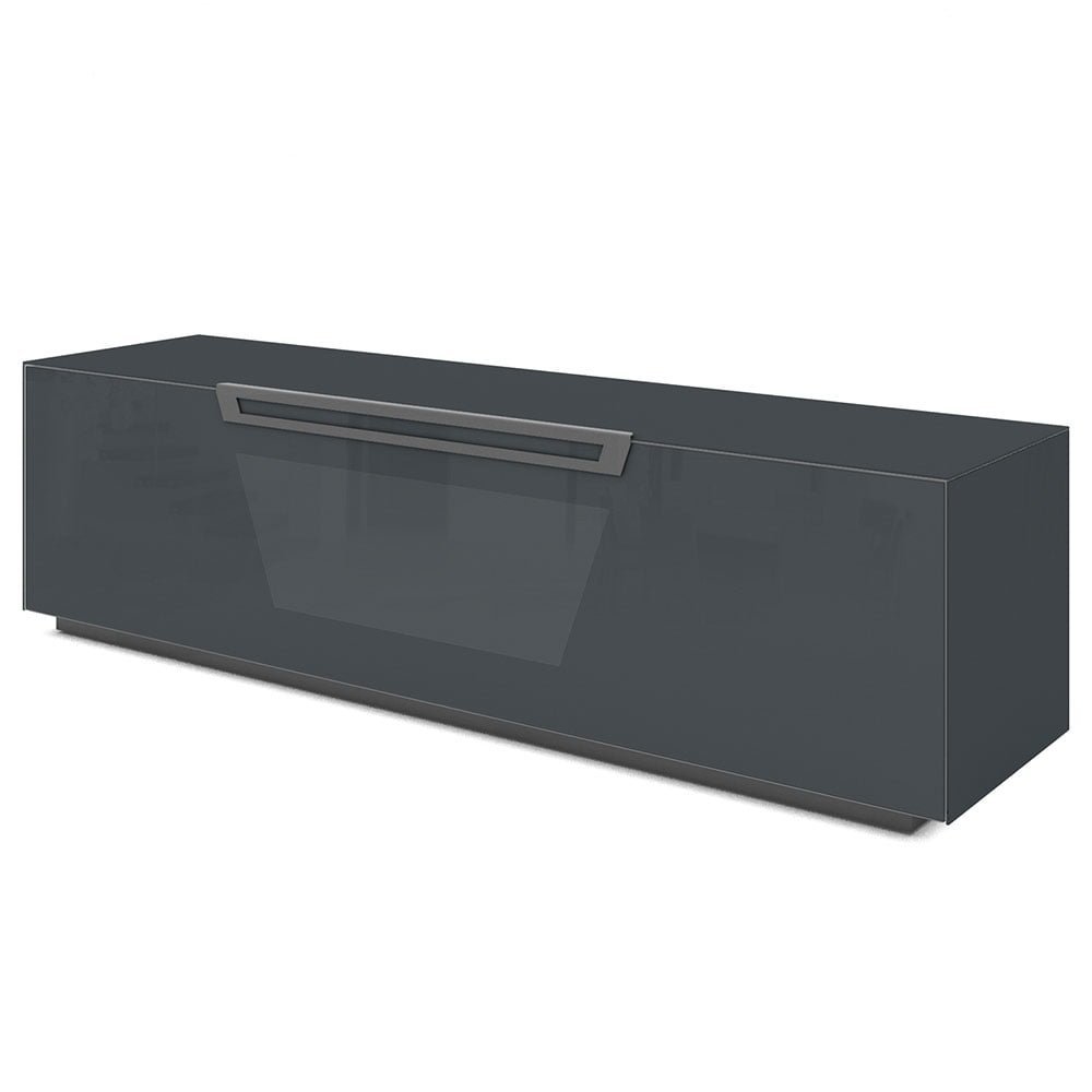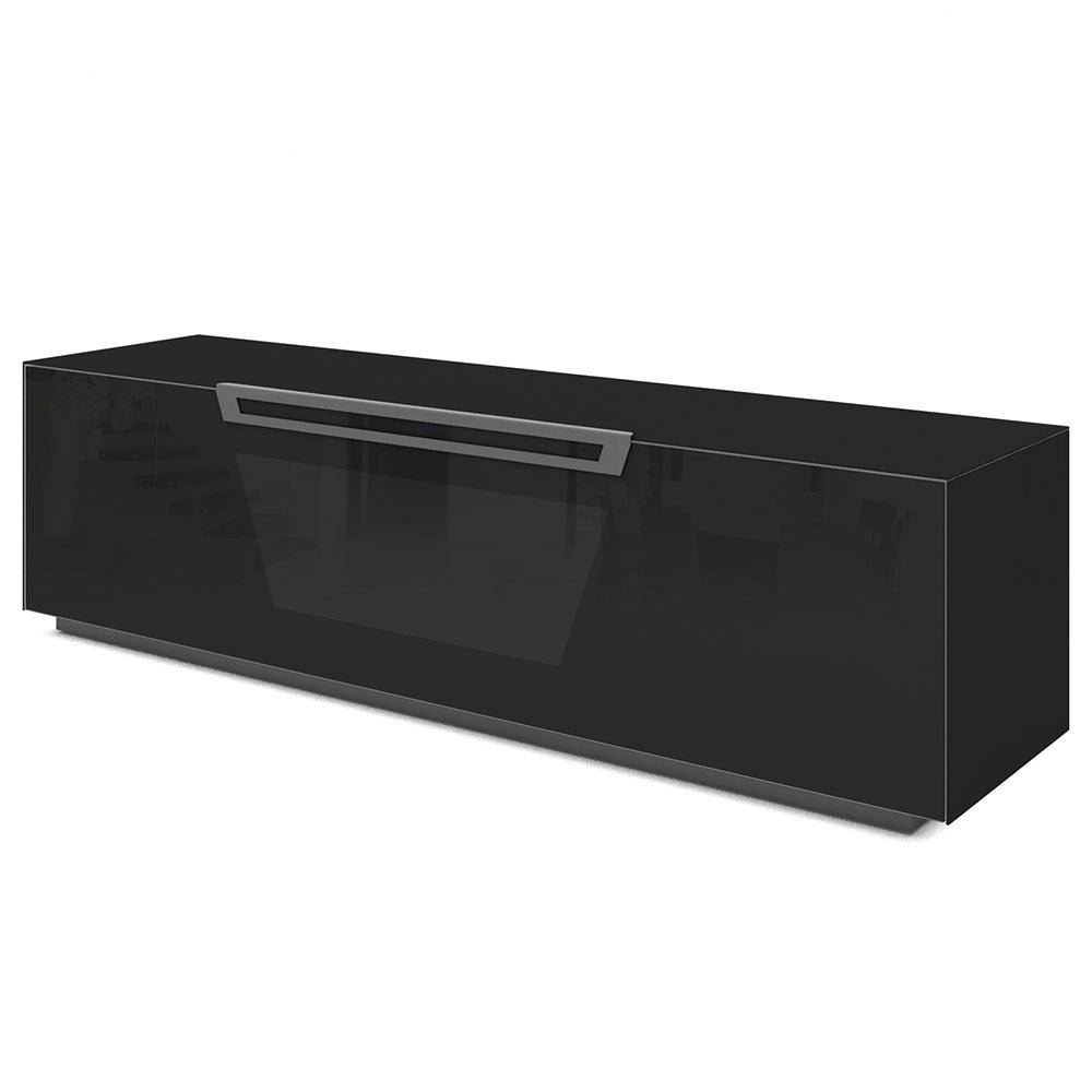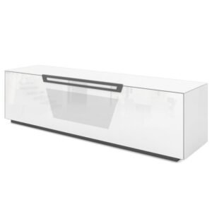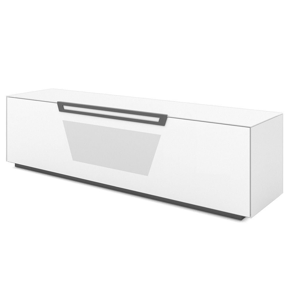 Mobile porta TV in vetro temperato con anta a ribalta soft motion e 4 ripiani interni. L’anta Active Door permette l’input del telecomando degli apparecchi posizionati all’interno e fori passacavi posteriori per facilitarne i collegamenti con l’apparecchio TV.