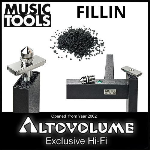 Per ottenere un livello superiore di isolamento meccanico, le strutture metalliche di tutti i mobili MusicTools, inclusi piedistalli per diffusori e ripiani per elettroniche, vengono completamente riempite con il Fillin.