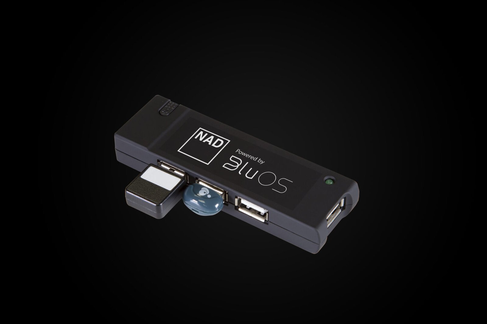 - Facile configurazione: collegatelo all’ingresso USB del vostro componente NAD dotato di MDC, collegatelo alla vostra rete e iniziate lo streaming