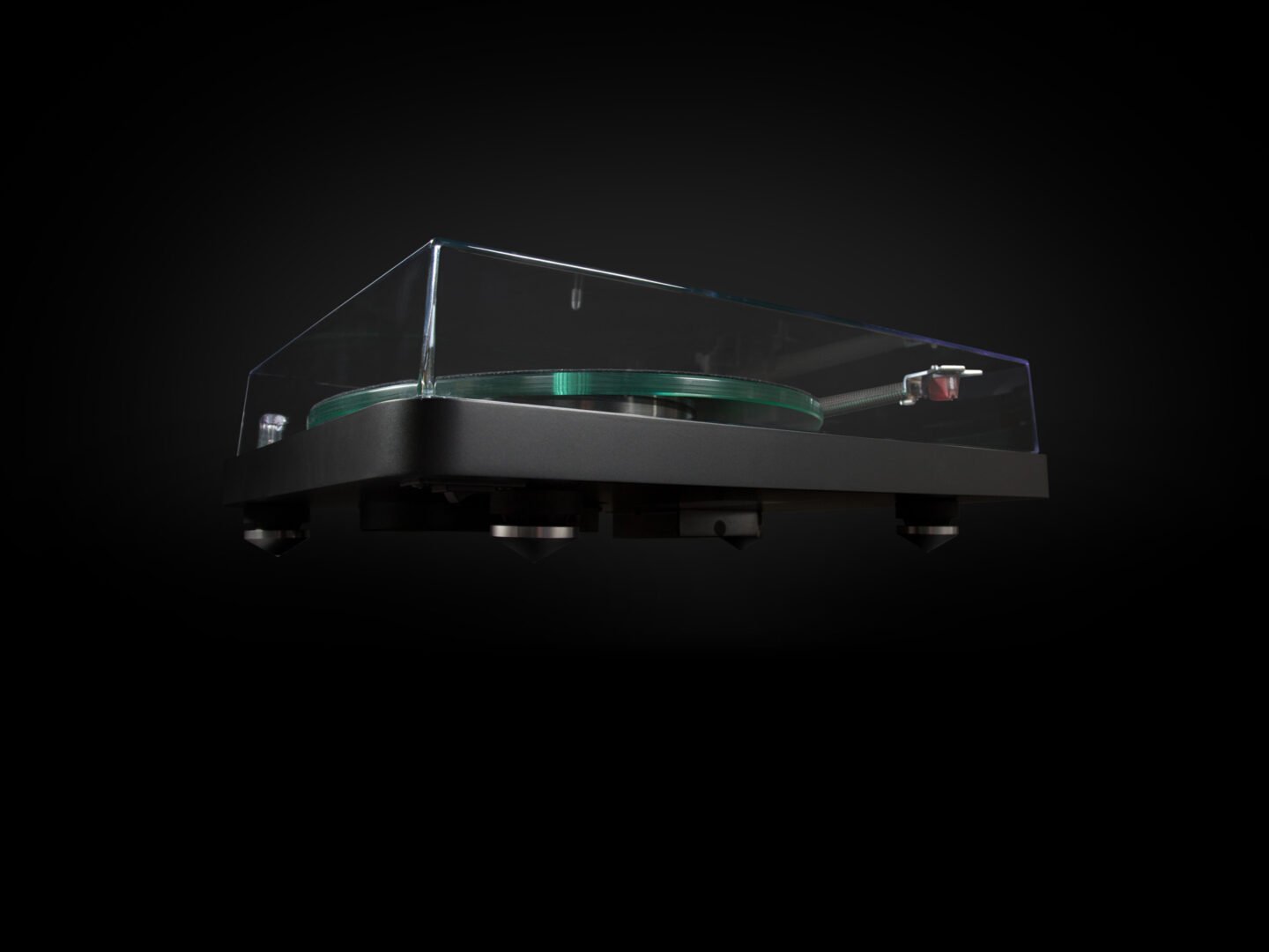 Ridurre al minimo tutte le vibrazioni spurie è fondamentale per ottenere il miglior risultato quando si suona il vinile. Poiché queste vibrazioni possono provenire da varie fonti, sia interne che esterne, i materiali e le dimensioni devono essere tutti attentamente calcolati per ridurre e bilanciare tutte le risonanze per evitare un accumulo di energia a particolari frequenze. Per isolare le vibrazioni esterne dagli altoparlanti o dai piedini che rimbalzano sul pavimento, usiamo una massiccia base in MDF con piedini antivibrazioni appositamente accordati, insieme ad una spessa copertura antipolvere non risonante. La scelta del piatto in vetro, del feltro, della base in MDF e del braccio in fibra di carbonio sono stati attentamente considerati per limitare e ridurre le vibrazioni spurie.