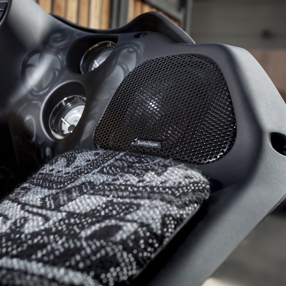 Il TMS6RG è un altoparlante coassiale a gamma completa progettato per adattarsi alle posizioni degli altoparlanti nella carenatura su alcune motociclette Harley-Davidson® Road Glide® selezionate. Presenta una struttura motoria in neodimio che guida un cono co-molto e rinforzato in polipropilene con surround in Santoprene. Dispone anche di un tweeter a cupola ultra-efficiente da 25 mm con tappo di fase integrato ed è reso resistente all’acqua e alle intemperie con l’aggiunta di una ragnatela anteriore in Santoprene che collega il tweeter all’assemblea del cono. L’altoparlante si monta utilizzando l’hardware di fabbrica e viene fornito con nuove assemblee di griglie. Consultare la tabella di compatibilità per la corrispondenza.
