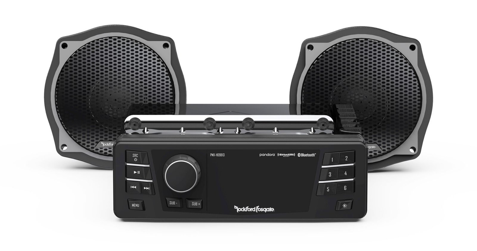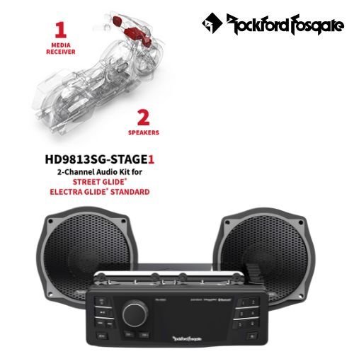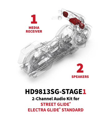 Progettato appositamente per alcuni modelli Harley-Davidson® Electra Glide® e Street Glide® del 1998-2013, questo sistema include un ricevitore multimediale digitale di ricambio e due altoparlanti da 16,5 cm (6.5″) per la carenatura.