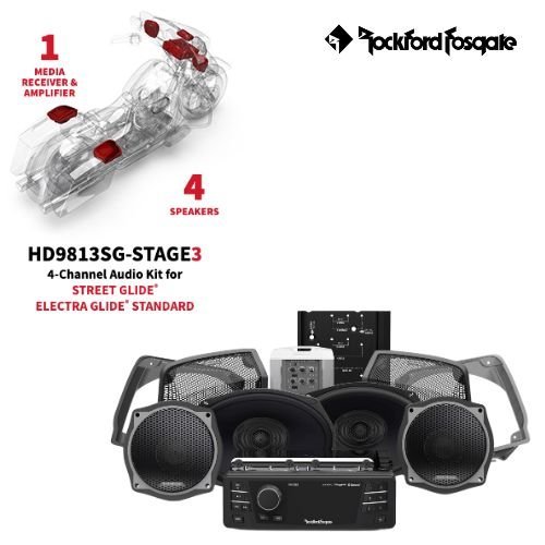Il tuo viaggio in moto raggiungerà nuove vette di esperienza grazie a questo sistema audio ad alte prestazioni, progettato appositamente per modelli Harley-Davidson® Road Glide® selezionati dal 1998 al 2013. Il sistema comprende un ricevitore multimediale digitale sostitutivo, due altoparlanti da 16,5 cm (6,5″) per la carenatura, due altoparlanti Tour-Pak® da 13 cm (5,25″), due altoparlanti sulla borsa laterale da 15 x 23 cm (6 x 9″), un amplificatore a 4 canali e un completo kit di installazione.