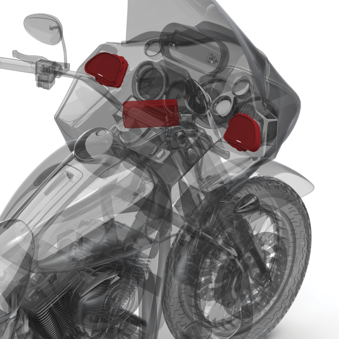 Se stai cercando più volume, allora hai bisogno del nostro kit audio frontale da 400 watt. Progettato attorno alla piattaforma Road Glide®, combina il nostro kit completo di installazione plug and play, il telaio compatto della serie Power, l’amplificatore a 4 canali e gli altoparlanti a montaggio diretto da 6,5″. Questo kit offre un’installazione di qualità professionale senza compromettere l’elettronica esistente della moto. Consulta la scheda Specifiche per i modelli compatibili.