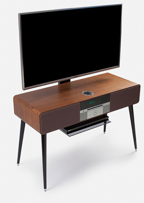 Our new R7 AV Mount, transforms R7 from a classic music system into a complete home entertainment solution! Designed exclusively for R7, TVs and associated equipment can be integrated so they seemingly ‘float’ above and below the cabinet of R7, keeping its elegant design intact.