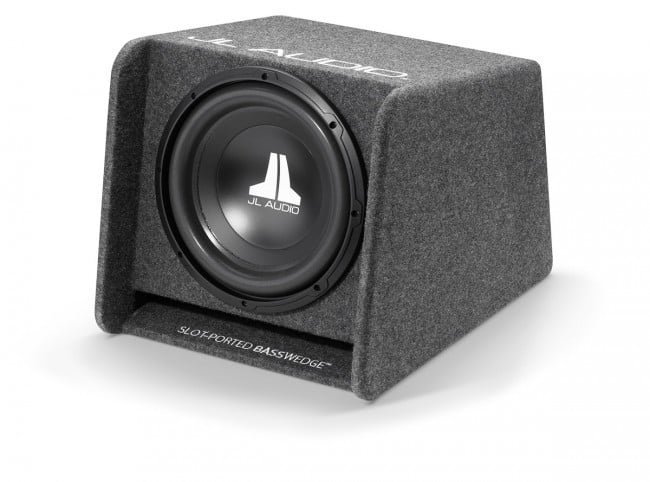 Finish: Dark gray, high-grade automotive carpet with “JL AUDIO” embroidery on the top edge and “Slot-Ported BassWedge™” embroidered on the port mouth.