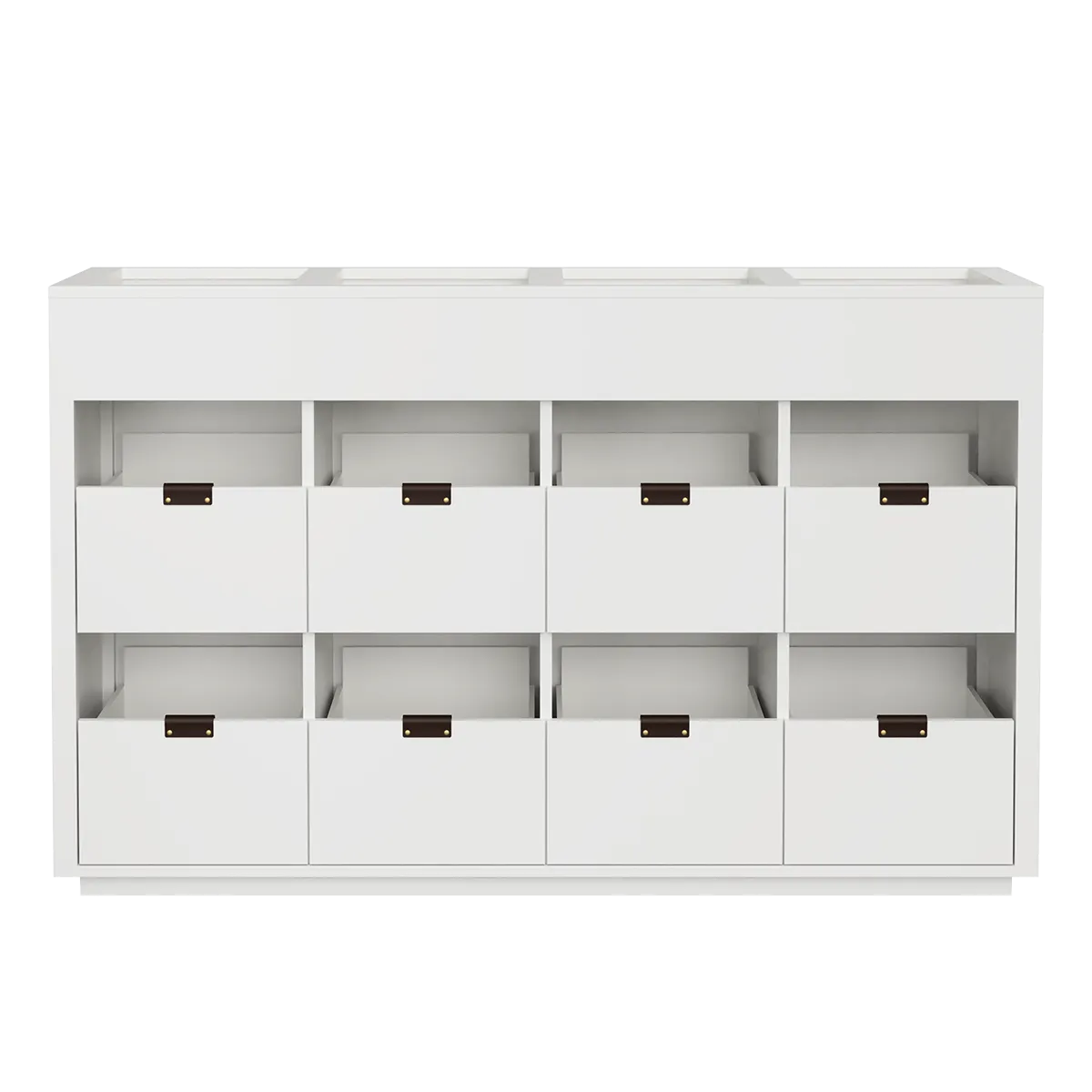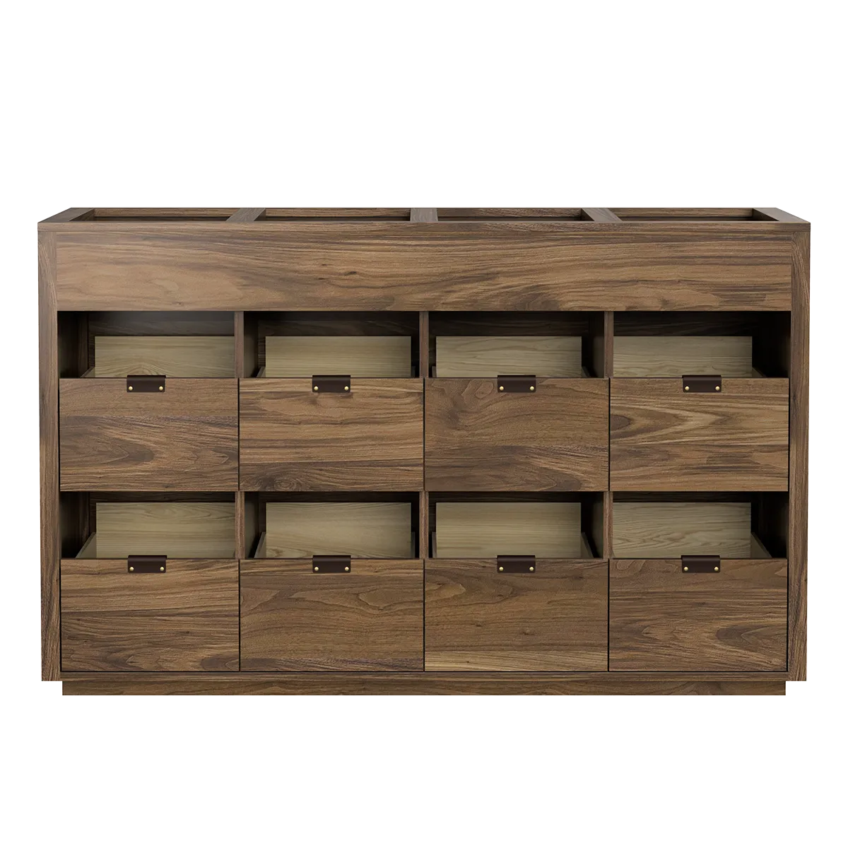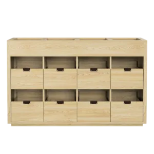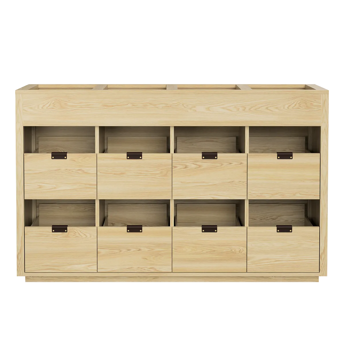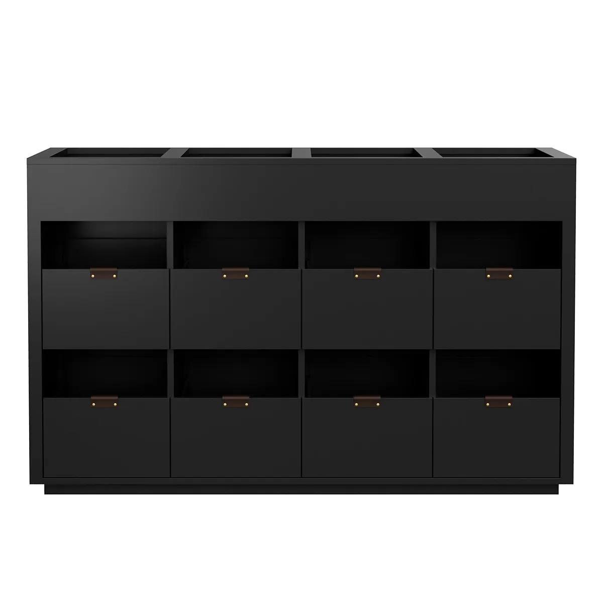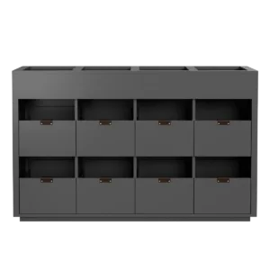 Ogni cassetto รจ costruito con la falegnameria a coda di rondine inglese a vista di Symbol e utilizza diapositive per cassetti full-extension e soft-close di fabbricazione tedesca. Ogni cassetto puรฒ contenere fino a 75 LP.