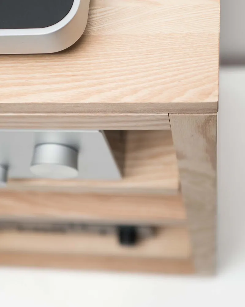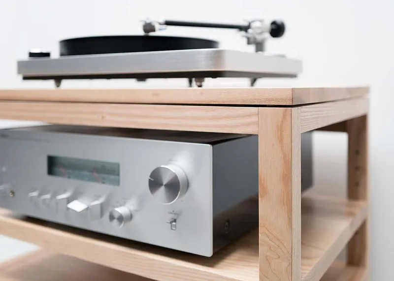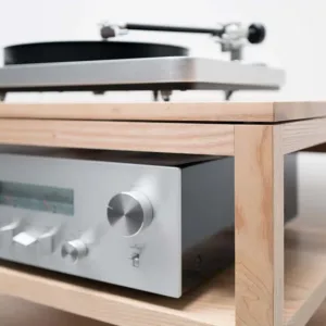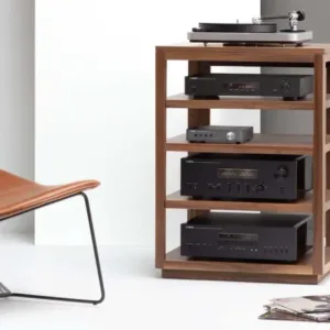 Il Dovetail rack audio include 4 ripiani e una base per giradischi in legno massello disaccoppiata dal mobile su un’unica sospensione in sorbothane. Realizzato con una struttura in legno massello con un design aperto che consente il flusso d’aria per il raffreddamento dei componenti. Gestione dei cavi integrata con fascette separate per cavi audio e di alimentazione; (2) ripiani regolabili e (1) ripiano fisso (centro); Perni per mensole antivibranti in acciaio inossidabile da 5 mm; ogni ripiano supporta fino a 54 kg. Costruito a mano.
