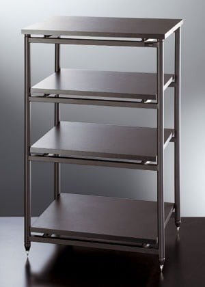 Tavolino con struttura a 4 gambe, 4 piani. Top e singoli piani in MDF, disaccoppiamento mediante coni in duralluminio per ogni ripiano.Finitura: Nero Prezzo IVA Inclusa: 490 Euro