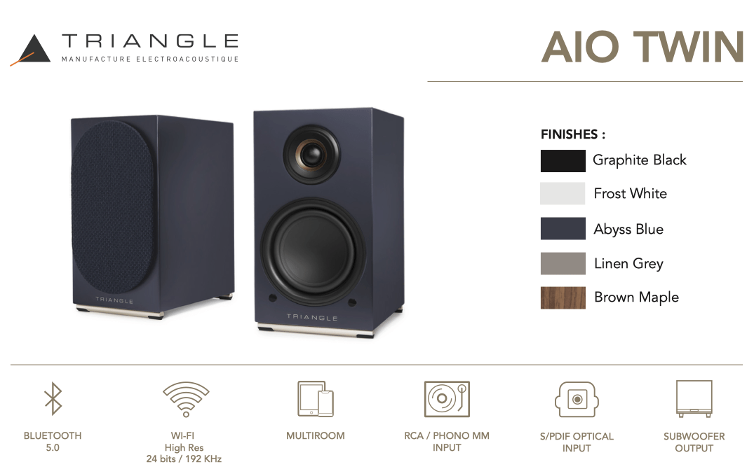 Gli altoparlanti AIO TWIN sono ricchi di tecnologie e know-how TRIANGLE. Versatili e dal design elegante, sono un prodotto all’avanguardia.
